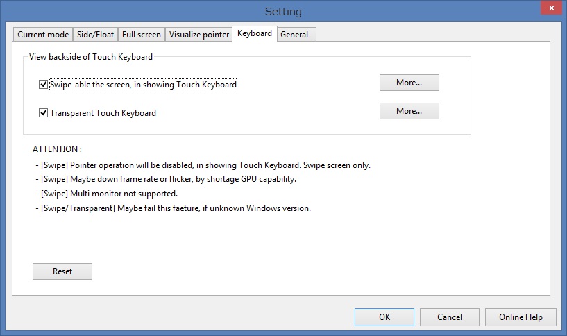 - [Swipe] Pointer operation will be disabled, in showing Touch Keyboard. Swipe screen only.